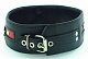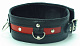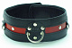 Стильный ошейник с красной полосой и металлическими заклепками обязательно понравится любителям БДСМ-игр. К пряжке можно пристегнуть поводок или наручники.