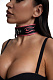 Черно-розовый кожаный ошейник с розовой строчкой