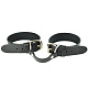 Черные кожаные наручники со съемной леопардовой опушкой