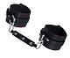 Наличие двух колец и карабинов, соединенных между собой кожаным ремешком, позволяет использовать изделие как раздельно – аксессуар-манжеты, так и как оковы для фиксации. К широким металлическим кольцам также можно присоединить и другие аксессуары при помощи карабинов.