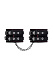 Наличие двух колец и карабинов, соединенных между собой металлической цепочкой, позволяет использовать изделие как раздельно – аксессуар-манжеты, так и как оковы для фиксации. К широким металлическим кольцам также можно присоединить и другие аксессуары при помощи карабинов.
