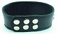 Чёрный кожаный ошейник с полукольцами и клёпками