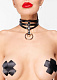 Длинный черный чокер из экокожи с двумя кольцами