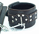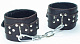 Черные кожаные наручники на металлической цепочке. Выполнены с заклепками из металла.