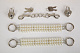 Белые наручники с тремя нитями из жемчуга . Закрываются на замочки в виде сердечек с индивидуальными ключиками. Наручники можно соединить небольшой цепочкой с карабинами. Упаковка - золотая подарочная коробка с бантом. Длина соединительной цепочки - 13 см.