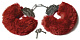 Шикарные бордовые меховые наручники с ключиками