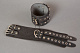 Широкие наручники, застегивающиеся на 2 пряжки. Изготовлены из натуральной кожи. Не подшиты. Размер регулируется. Прилагается карабин. Ручная работа. Ширина – 7 см.