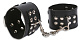 Широкие манжеты выполнены из высококачественного кожзаменителя. Края аксессуара обработаны контрастными швами. На манжетах есть по паре ремешков с пряжками, с помощью которых можно регулировать их размер. Манжеты соединены цепочкой, поэтому могут использоваться в качестве фиксаторов для рук и ног. Ширина - 5,5 см.