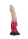 Бежево-розовый фаллоимитатор с основанием, рисунок которого напоминает шкуру волка, выполнен вручную из нежного силикона. Чётко очерченная и чуть заострённая головка плавно переходит в упругий ствол с характерным для волков узлом.