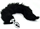 Серебристая анальная пробка из нержавеющей стали с черным гибким хвостом