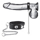 Мужское кольцо на пенис из черной, качественной, простроченной эко-кожи. Кольцо застегивается на 2 металлические клепки. К кольцу присоединен поводок из металла. В конце цепочки большое кольцо, к которому можно пристегивать другие девайсы. Длина поводка - 32 см.
