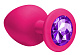 Большая розовая анальная пробка Emotions Cutie Large с фиолетовым кристаллом - 10 см.