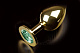 Большая золотая анальная пробка с закругленным кончиком и изумрудным кристаллом - 9 см.