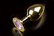 Большая золотая анальная пробка с закругленным кончиком и розовым кристаллом - 9 см.
