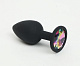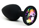 Черная анальная пробочка с радужным стразом - 7,6 см.