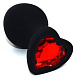 Черная анальная силиконовая пробка с красным кристаллом в форме сердца - 8,8 см.