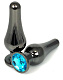 Черная удлиненная анальная пробка с голубым кристаллом - 8 см.