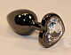 Чёрная анальная пробка с прозрачным стразом-сердцем - 8 см.