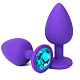 Фиолетовая анальная пробка с голубым стразом - 6,8 см.