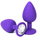 Фиолетовая анальная пробка с прозрачным стразом - 9,2 см.