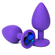 Фиолетовая анальная пробка с синим стразом - 6,8 см.