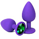 Фиолетовая анальная пробка с зеленым стразом - 8 см.
