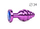 Коническая ребристая фиолетовая анальная втулка с синим кристаллом - 8 см.