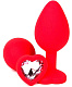 Красная силиконовая анальная пробка с нежно-розовым стразом-сердцем - 10,5 см.