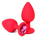 Красная силиконовая пробка с розовым кристаллом - 8 см.