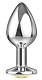 Малая серебристая анальная пробка Diamond Yellow Sparkle Small с жёлтым кристаллом - 7 см.