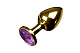Маленькая золотистая анальная пробка с круглым кончиком и фиолетовым кристаллом - 7 см.