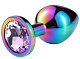 Разноцветная анальная пробка с сиреневым кристаллом - 6,8 см.