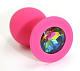 Розовая силиконовая анальная пробка с радужным кристаллом - 7 см.