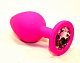 Розовая силиконовая анальная пробка с розовым стразом - 7 см.