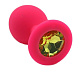 Розовая силиконовая анальная пробка с жёлтым кристаллом - 7 см.