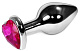Серебристая анальная пробка с розовым кристаллом-сердечком - 8 см.