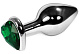 Серебристая анальная пробочка с зеленым кристаллом-сердцем - 9 см.