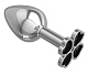 Серебристая анальная втулка с клевером из чёрных кристаллов - 7 см.