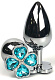 Серебристая анальная втулка с клевером из голубых кристаллов - 8 см.