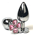 Серебристая анальная втулка с клевером из нежно-розовых кристаллов - 6,5 см.