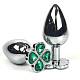 Серебристая анальная втулка с клевером из зеленых кристаллов - 6,5 см.