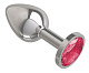 Серебристая анальная втулка с малиновым кристаллом - 7 см.