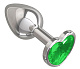 Серебристая анальная втулка с зеленым кристаллом-сердцем - 7 см.