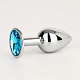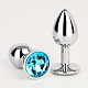 Серебристая анальная втулочка с голубым кристаллом - 7 см.