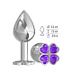 Средняя серебристая анальная втулка с клевером из фиолетовых кристаллов - 8,5 см.
