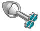 Средняя серебристая анальная втулка с клевером из голубых кристаллов - 8,5 см.