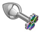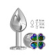 Средняя серебристая анальная втулка с клевером из радужных кристаллов - 8,5 см.