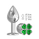 Средняя серебристая анальная втулка с клевером из зеленых кристаллов - 8,5 см.