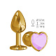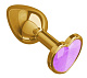 Золотистая анальная пробка с сиреневым кристаллом-сердцем - 7 см.