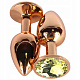 Золотистая анальная пробка с желтым кристаллом - 6,8 см.